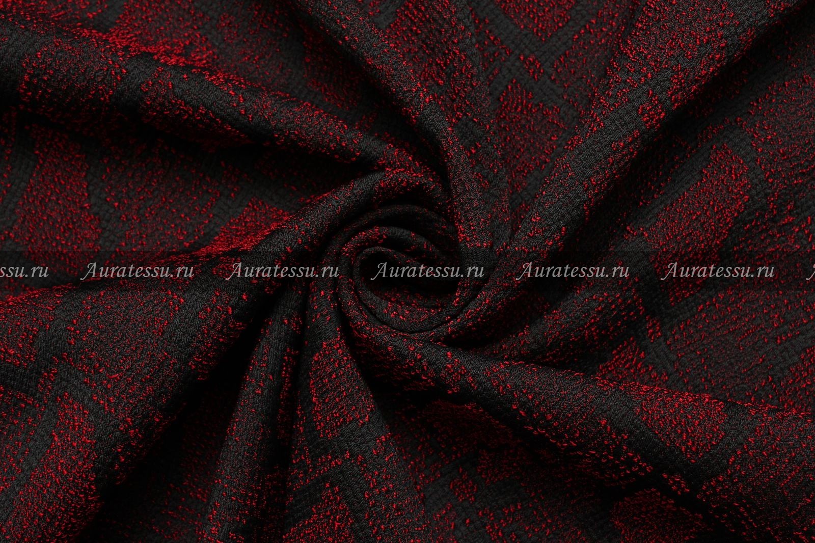 Жаккард-стрейч Vesta чёрно-красный с мелким узором