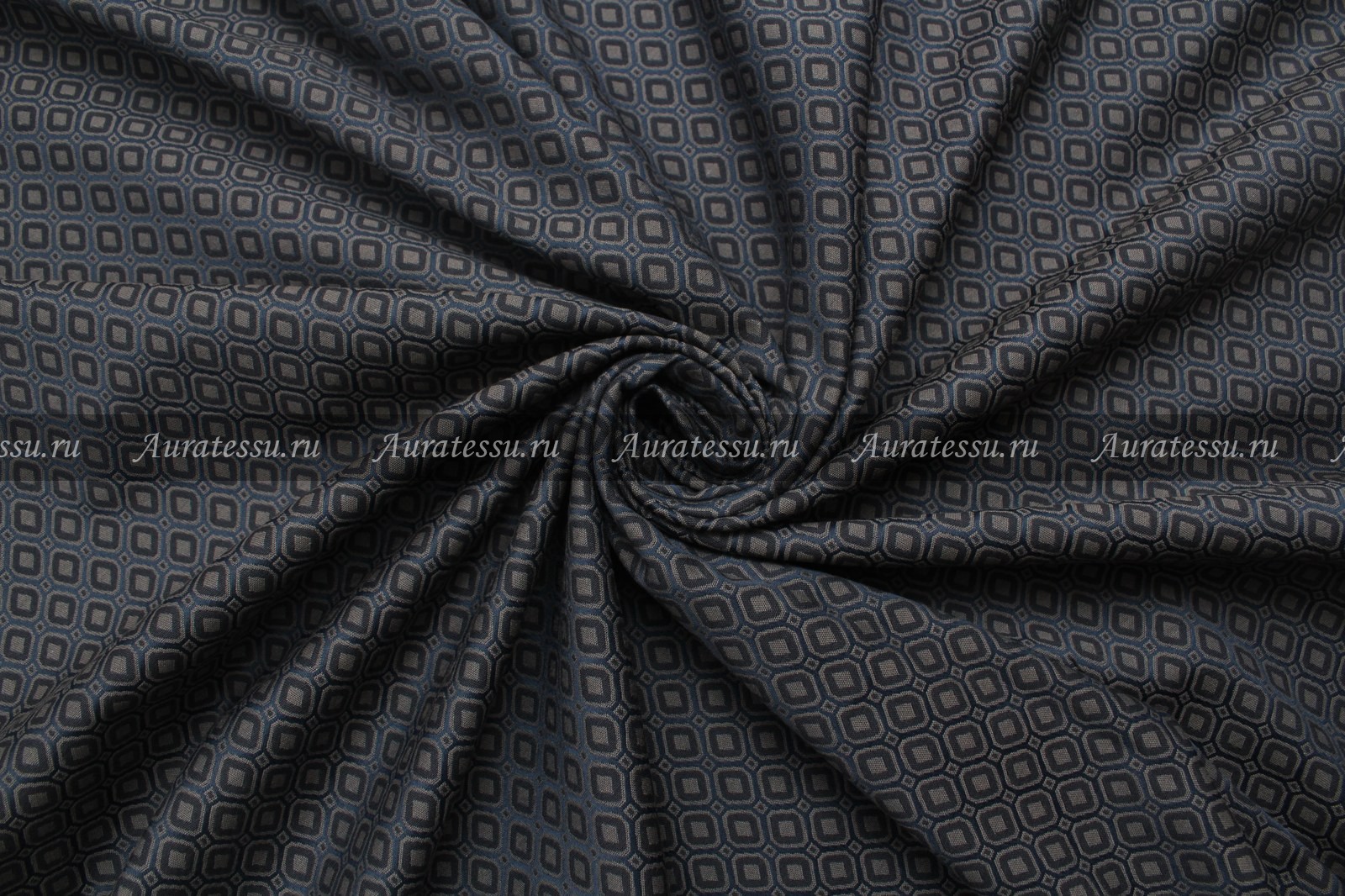 Жаккард стрейч серо-чёрно-синий в ромбик