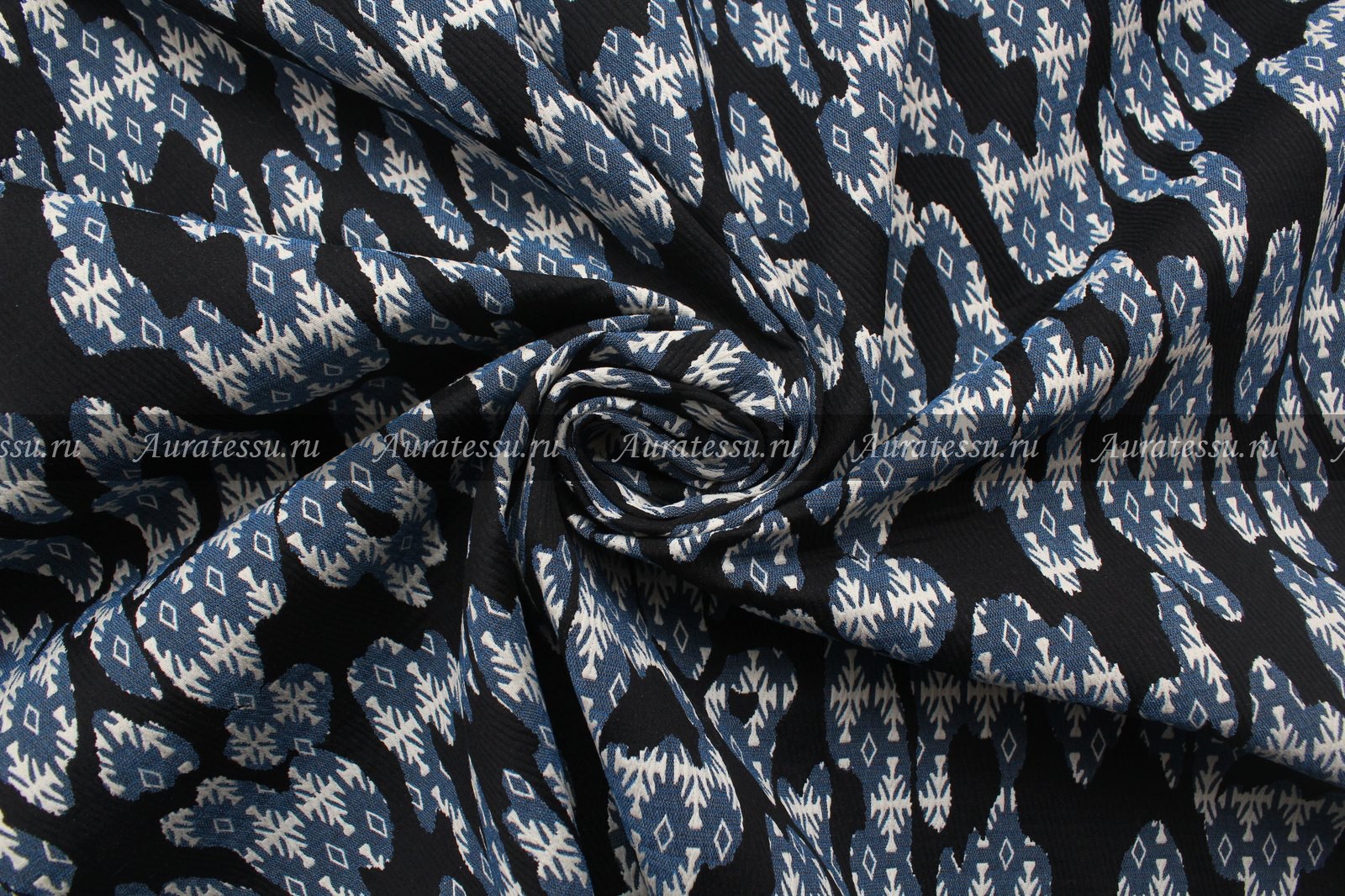 Дополнительная информация:Плотный, очень эластичный жаккард с причудливым бело-синим узором на чёрном фоне. Рисунок в виде молочно-белых снежинок на синем «джинсовом» фоне. Основное поле чёрного, насыщенного цвета с выпуклым диагональным рубчиком. При желании изнаночная сторона может служить отделкой. Кремовый фон с чёрными снежинками на сером. Полотно держит форму. Подходит для пошива костюмной, плательной и лёгкой летней пальтовой одежды разнообразных силуэтов. Рекомендации по уходуЖаккардовые ткани с составом 100% полиамид: 100% полиамид или полиамид с эластаном (в том числе полиамид более 50%+ ацетат): плательная, костюмная группа. Ткани жаккардовых переплетений, в состав которых входит в основном полиамид с добавлением вискозы, ацетата и эластана можно стирать в машине при температуре до 30°С в щадящем режиме. Можно отжимать в барабане, но всегда лучше на оборотах до 500. Синтетические ткани практически не дают усадку и не мнутся. Для сушки их нужно подвешивать лучше наизнанку. Эти ткани сохнут быстро и иногда не нуждаются в утюжке. Если вы хотите их отутюжить, то делайте это с изнаночной стороны с паром. Гладить на "шелке", можно слегка сбрызнуть. Жаккарды, с шёлковыми волокнами: Рекомендации производителя - профессиональная химчистка. При таком составе, мы тоже не рекомендуем стирать ткань, но вы можете попробовать на кусочке, оставшемся от кроя: ручная стирка, вода до 30°С, не замачивать, мягкие моющие средства для шёлка, стирать только загрязненные места, отжим в полотенце, сушка в горизонтальном расправленном виде изнанкой вверх, гладить на шелке. Вкусочек побольше, чтобы было видно, как поведёт себя ткань.
