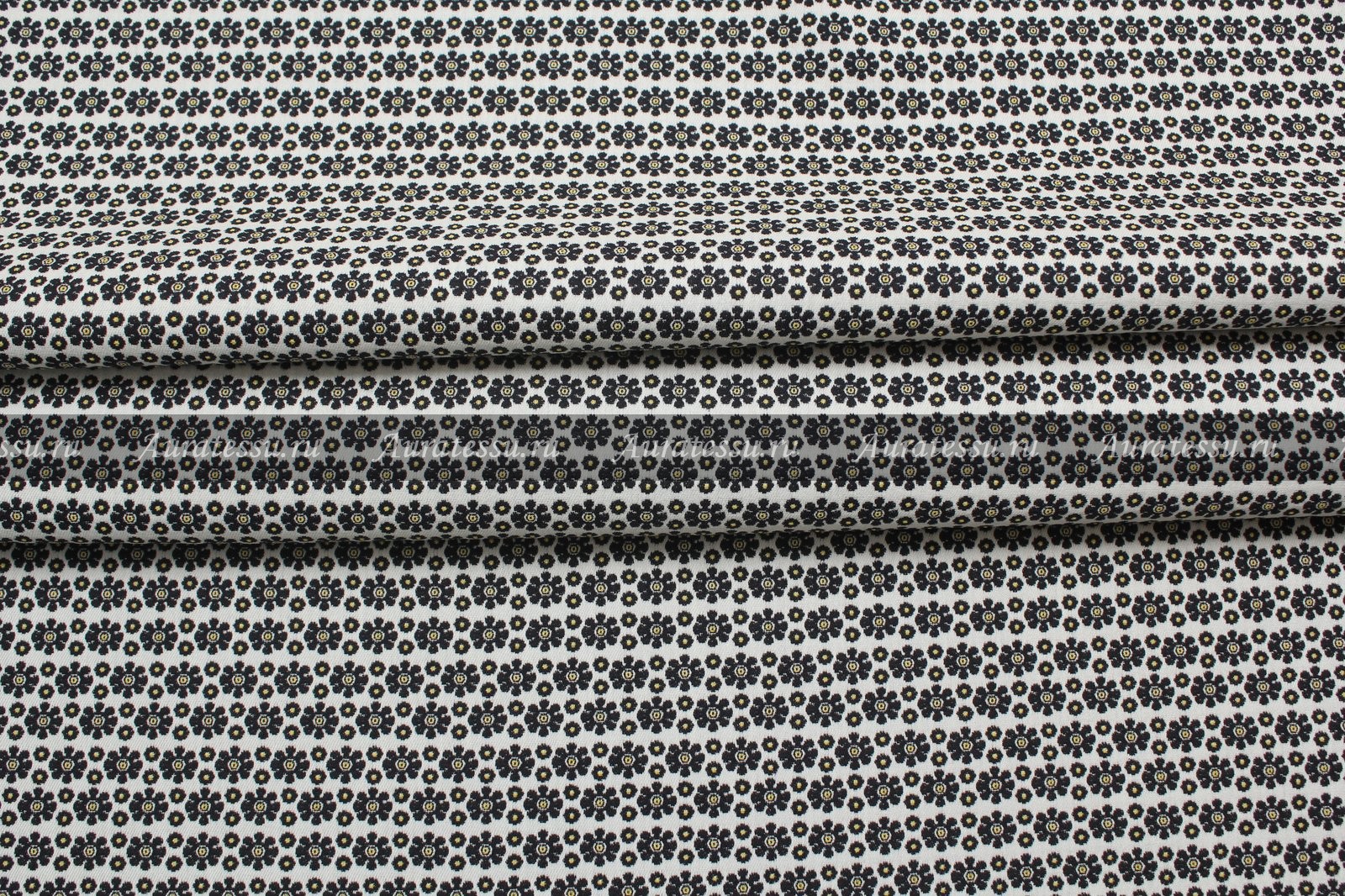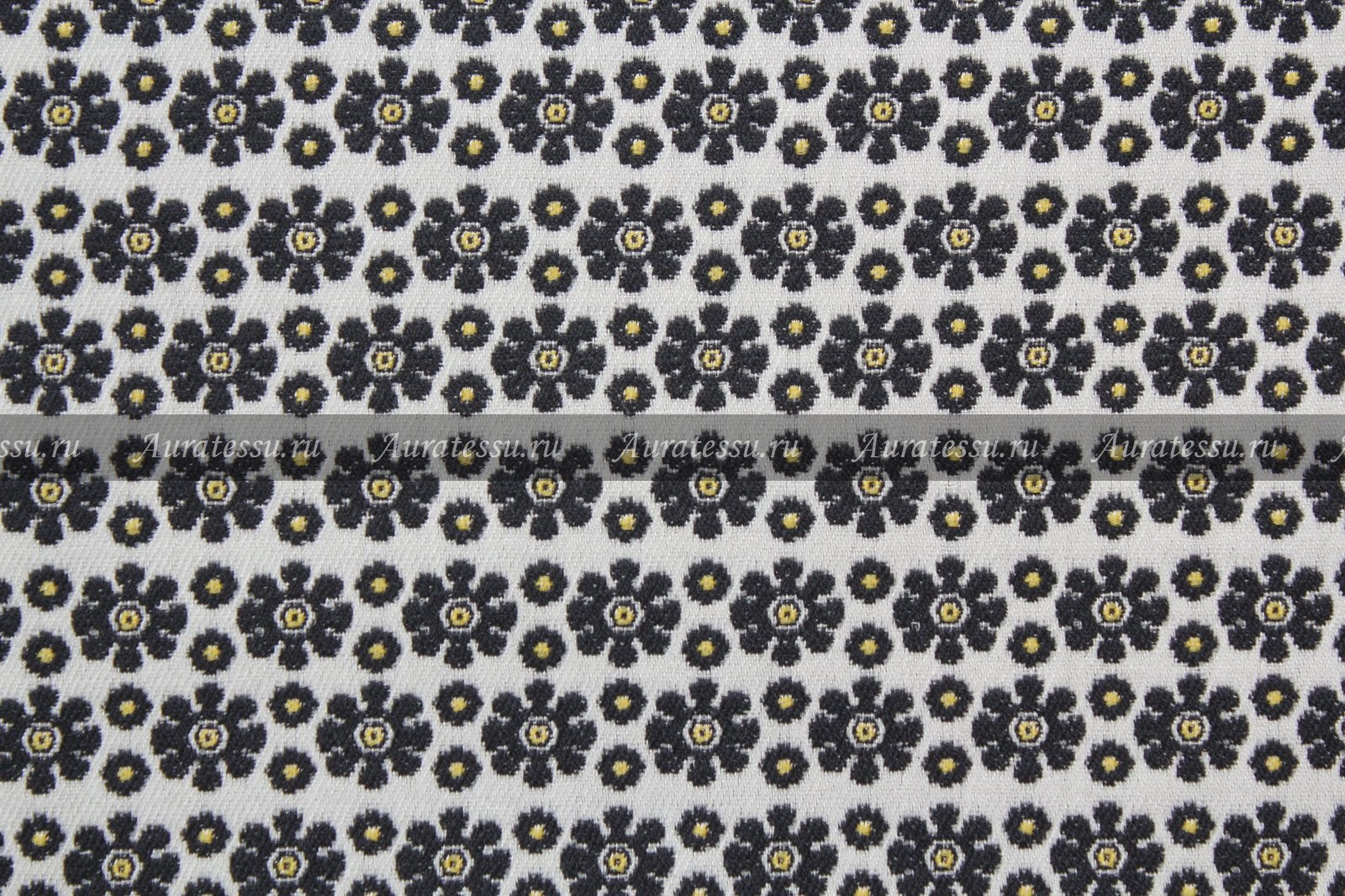 - Жаккард стрейч чёрные с жёлтым цветочки на белом фоне