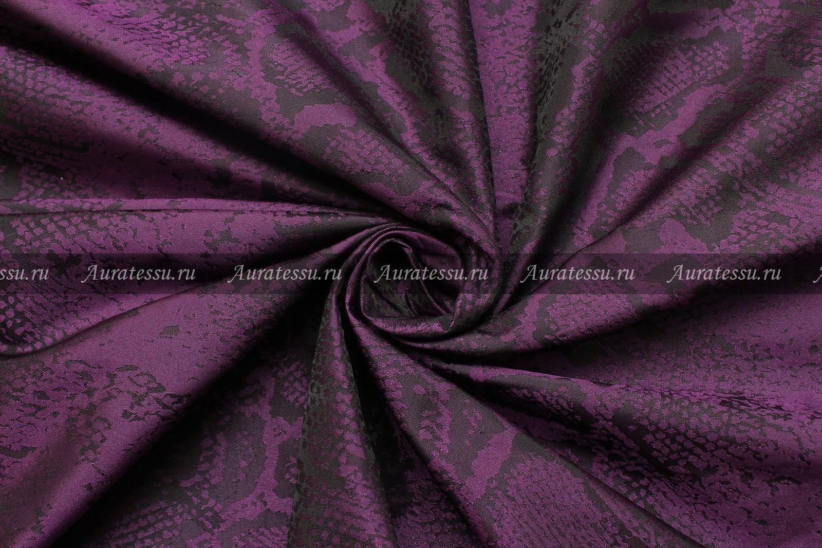 Дополнительная информация:Жаккард на тафте средней плотности, упругий, слегка глянцевый. Ткань с узором под рептилию выполнена в чёрном и фиолетовом цвете. Узор не крупный продольными полосами. Полотно запоминает форму, отлично драпируется, держит мягкую складку и сборку. Подходит для пошива нарядных платьев, жакетов, прямых и объёмных юбок. Рекомендации по уходуЖаккардовые ткани с составом 100% полиамид: 100% полиамид или полиамид с эластаном (в том числе полиамид более 50%+ ацетат): плательная, костюмная группа. Ткани жаккардовых переплетений, в состав которых входит в основном полиамид с добавлением вискозы, ацетата и эластана можно стирать в машине при температуре до 30°С в щадящем режиме. Можно отжимать в барабане, но всегда лучше на оборотах до 500. Синтетические ткани практически не дают усадку и не мнутся. Для сушки их нужно подвешивать лучше наизнанку. Эти ткани сохнут быстро и иногда не нуждаются в утюжке. Если вы хотите их отутюжить, то делайте это с изнаночной стороны с паром. Гладить на "шелке", можно слегка сбрызнуть. Жаккарды, с шёлковыми волокнами: Рекомендации производителя - профессиональная химчистка. При таком составе, мы тоже не рекомендуем стирать ткань, но вы можете попробовать на кусочке, оставшемся от кроя: ручная стирка, вода до 30°С, не замачивать, мягкие моющие средства для шёлка, стирать только загрязненные места, отжим в полотенце, сушка в горизонтальном расправленном виде изнанкой вверх, гладить на шелке. Вкусочек побольше, чтобы было видно, как поведёт себя ткань.