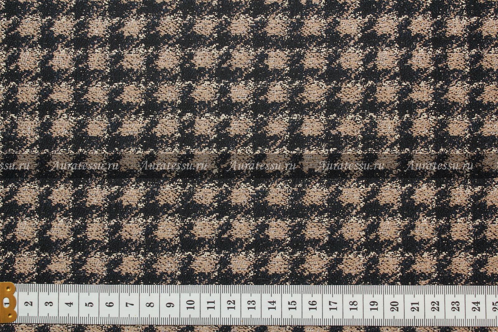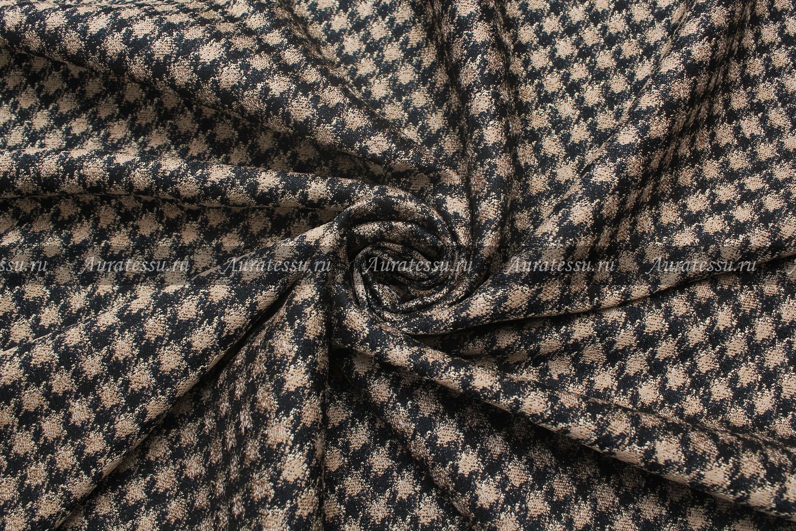 Жаккард костюмно-плательный пье-де-пуль «Клетка» чёрно- бежевая 420 г/мп