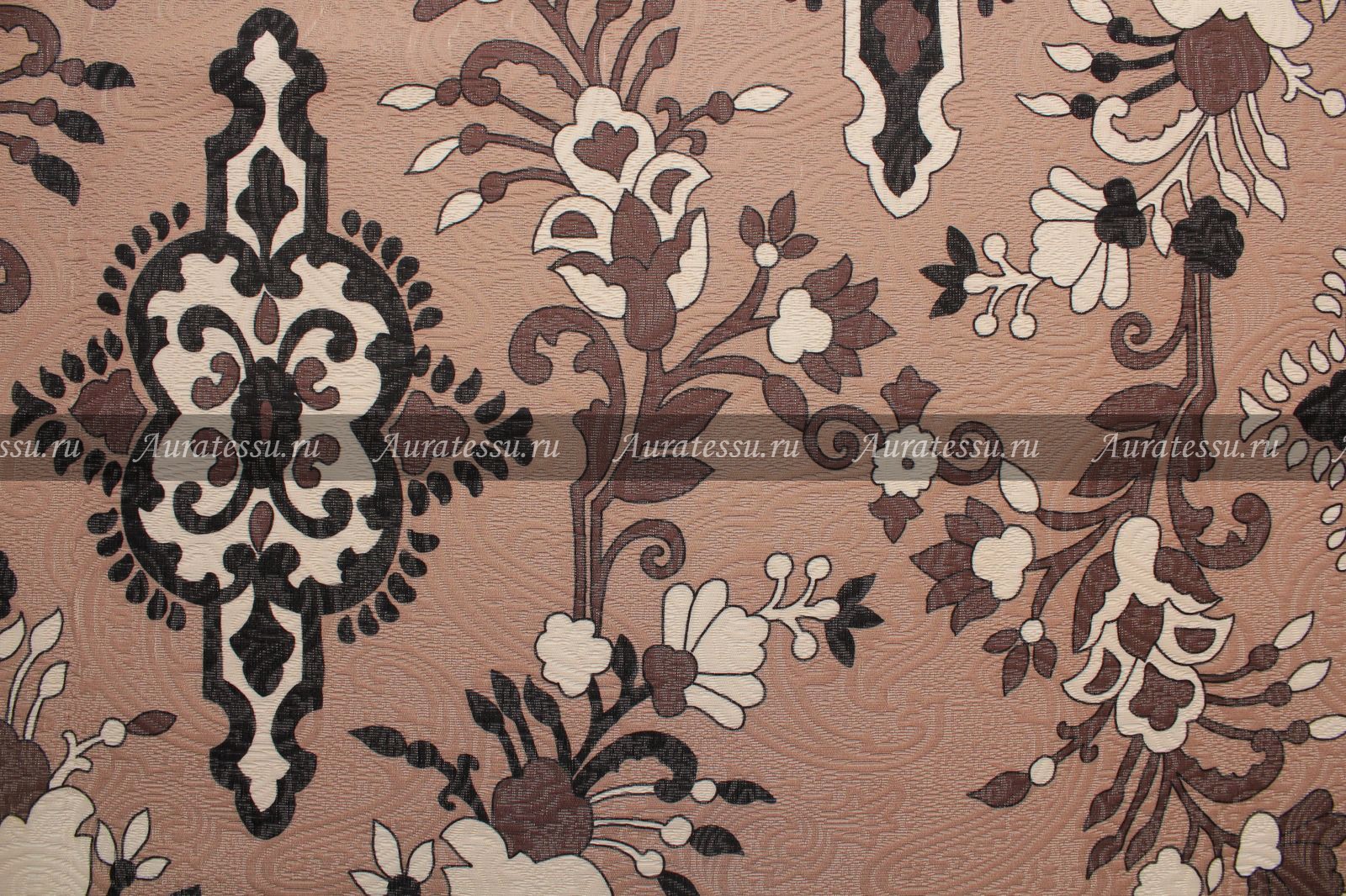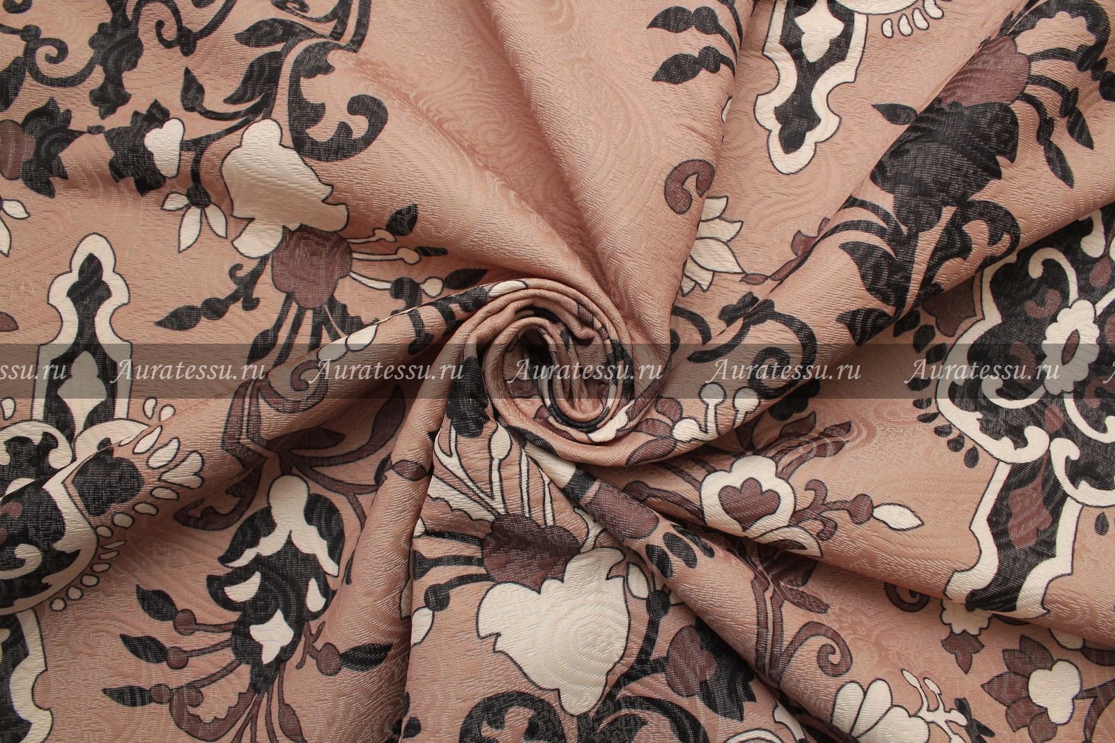 Жаккард костюмный метлассе в коричневато-бежевых тонах с растительным орнаментом