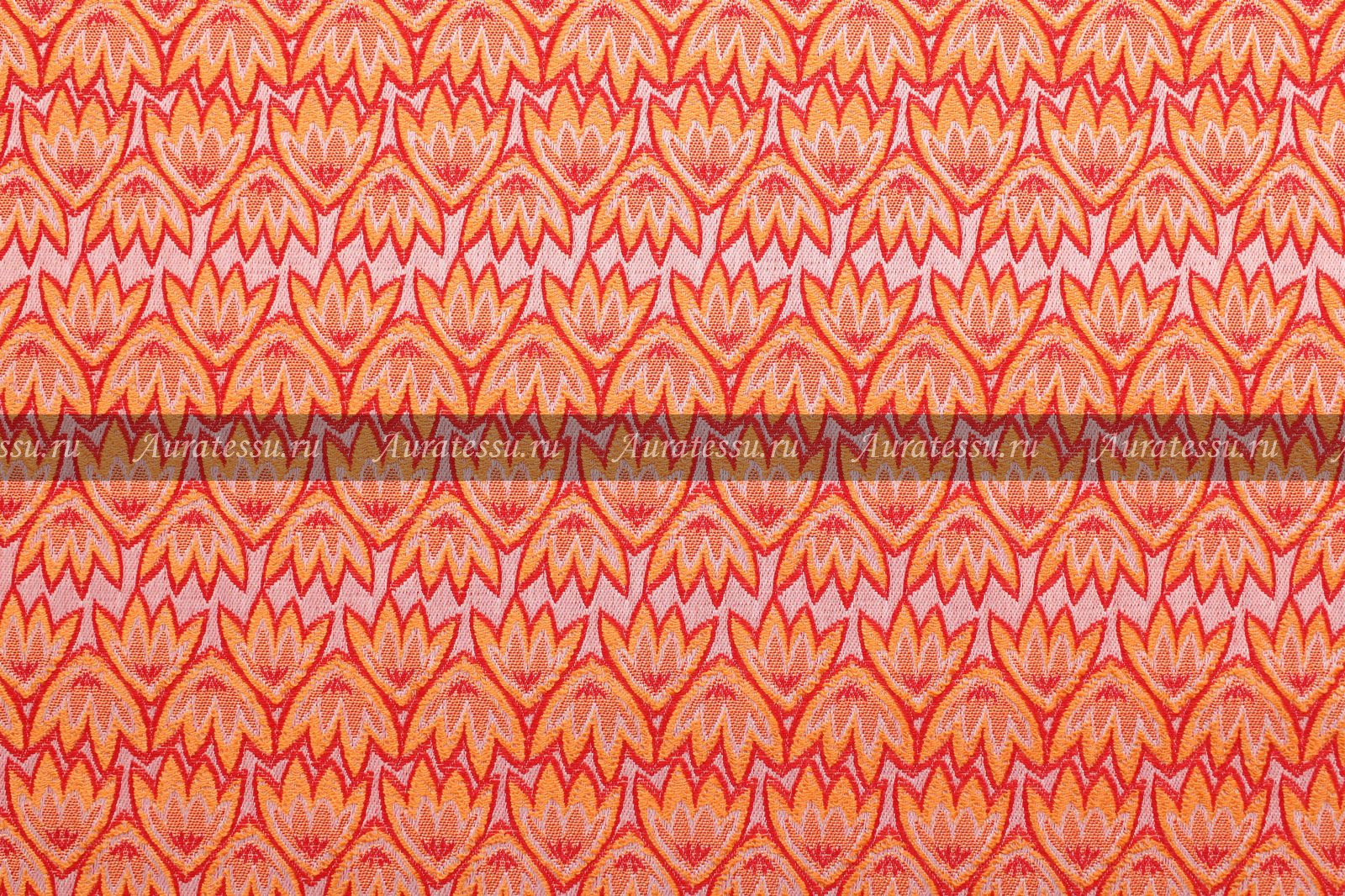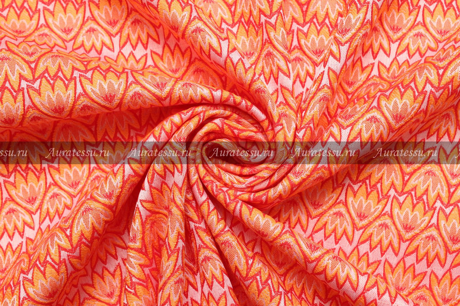 - Жаккард-стрейч красно-оранжево-белый с мелким узором «лилии»