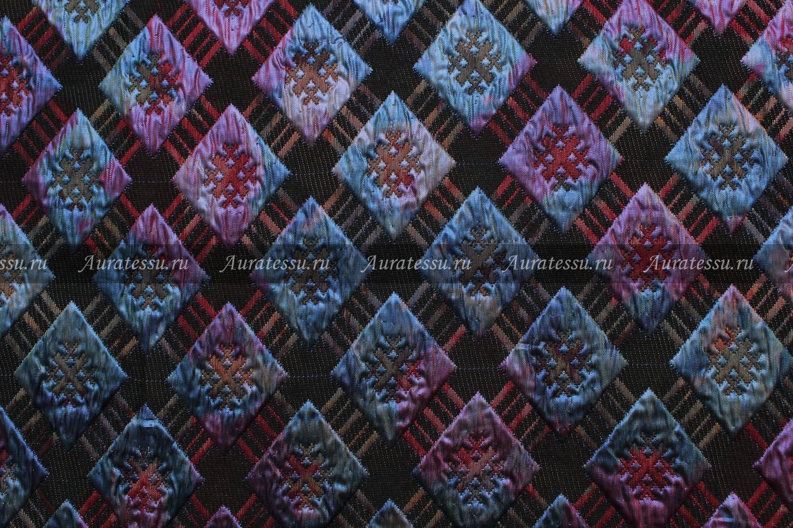 - Жаккард клоке пальтово-костюмный, двухслойный в пурпурно-синих тонах с узором ромбы