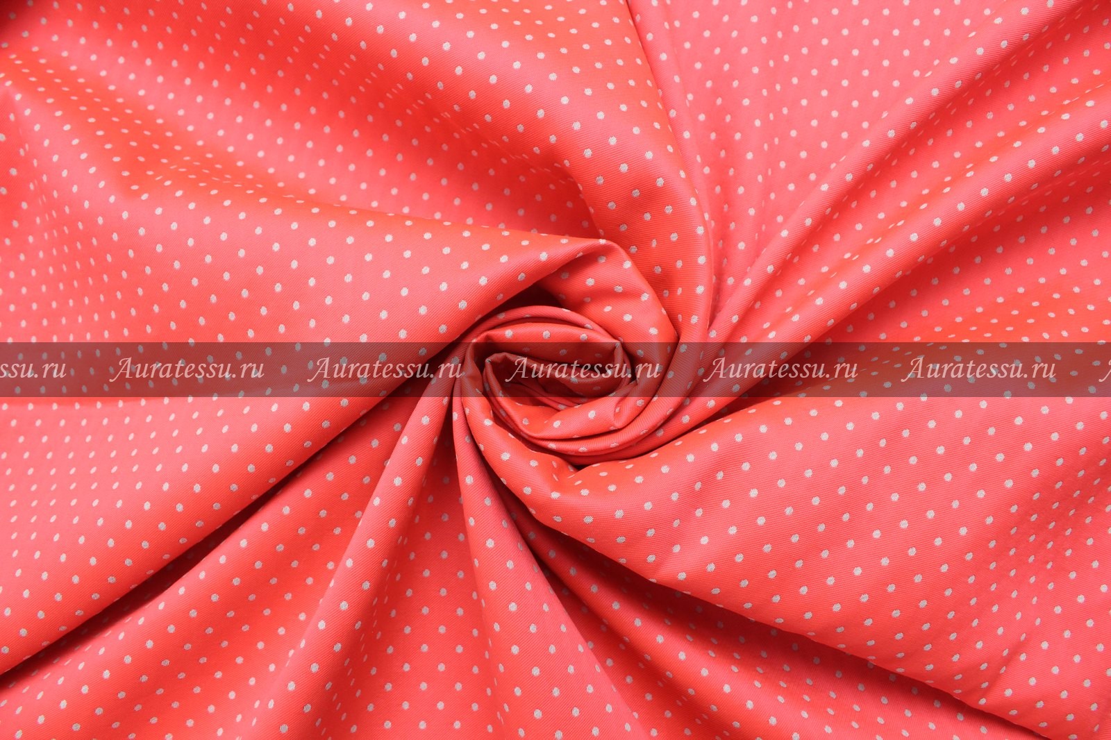 Дополнительная информация:Средней плотности 290 г/мп жаккардовое полотно розовато-кораллового цвета с узором в горошек. Горошек мелкий, диаметром 3 мм, бело-стального цвета. Ткань матовая, держит форму. Подходит для пошива плательной и костюмной одежды прямых, объёмных силуэтов. Рекомендации по уходуЖаккардовые ткани с составом 100% полиамид: 100% полиамид или полиамид с эластаном (в том числе полиамид более 50%+ ацетат): плательная, костюмная группа. Ткани жаккардовых переплетений, в состав которых входит в основном полиамид с добавлением вискозы, ацетата и эластана можно стирать в машине при температуре до 30°С в щадящем режиме. Можно отжимать в барабане, но всегда лучше на оборотах до 500. Синтетические ткани практически не дают усадку и не мнутся. Для сушки их нужно подвешивать лучше наизнанку. Эти ткани сохнут быстро и иногда не нуждаются в утюжке. Если вы хотите их отутюжить, то делайте это с изнаночной стороны с паром. Гладить на "шелке", можно слегка сбрызнуть. Жаккарды, с шёлковыми волокнами: Рекомендации производителя - профессиональная химчистка. При таком составе, мы тоже не рекомендуем стирать ткань, но вы можете попробовать на кусочке, оставшемся от кроя: ручная стирка, вода до 30°С, не замачивать, мягкие моющие средства для шёлка, стирать только загрязненные места, отжим в полотенце, сушка в горизонтальном расправленном виде изнанкой вверх, гладить на шелке. Вкусочек побольше, чтобы было видно, как поведёт себя ткань.