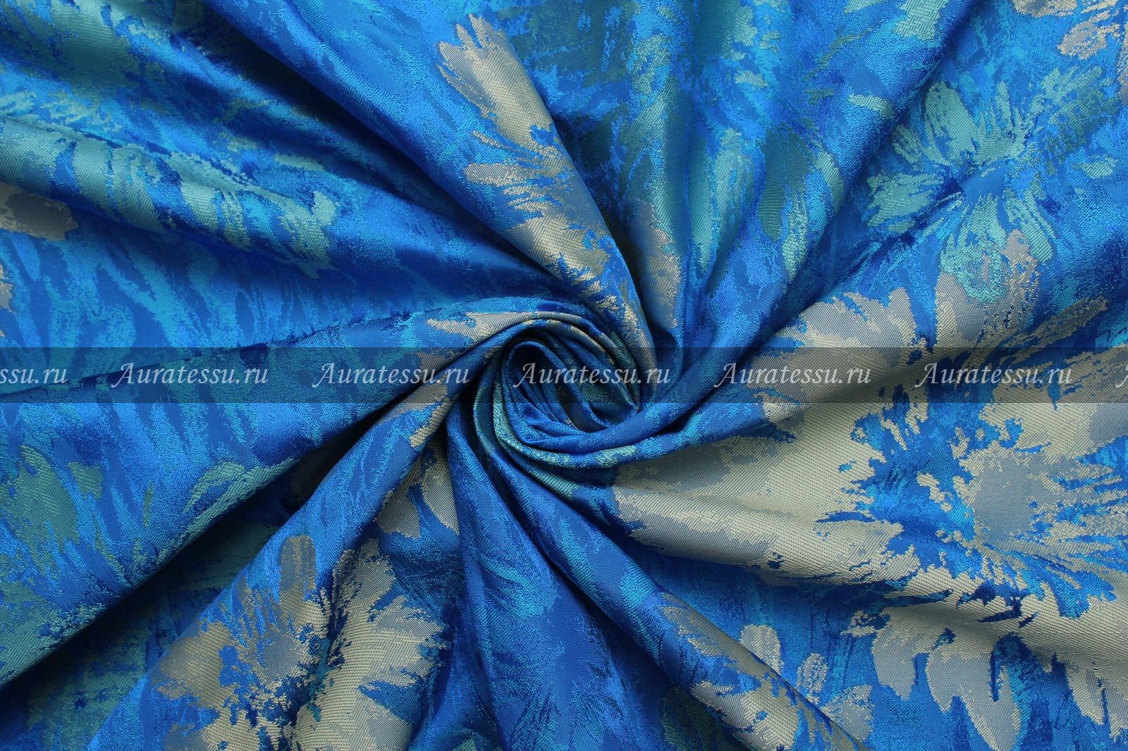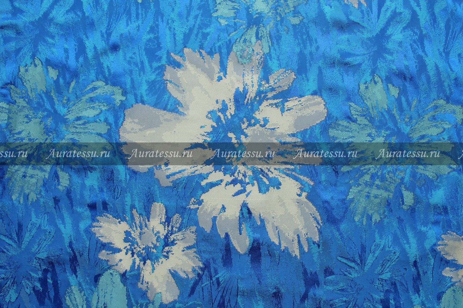 - Жаккард сине-голубой с бирюзовыми и оливковыми цветами