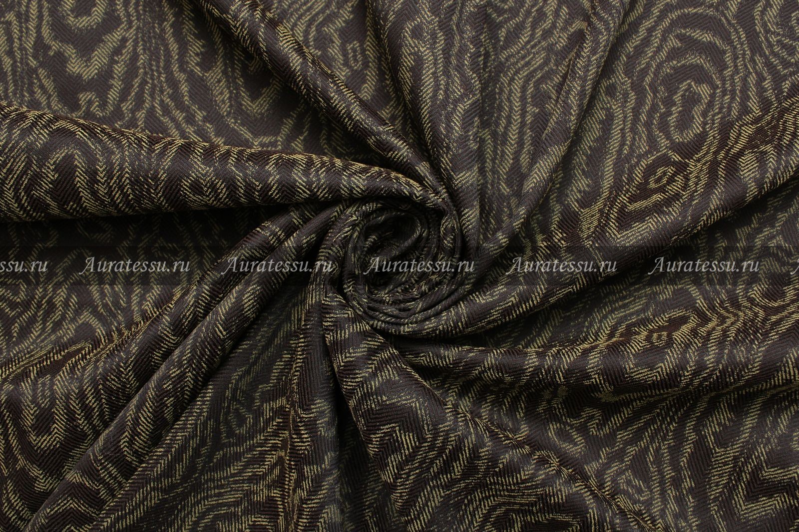 - Жаккард-стрейч рыжевато-коричневый «муар» на чёрно-зелёном фоне