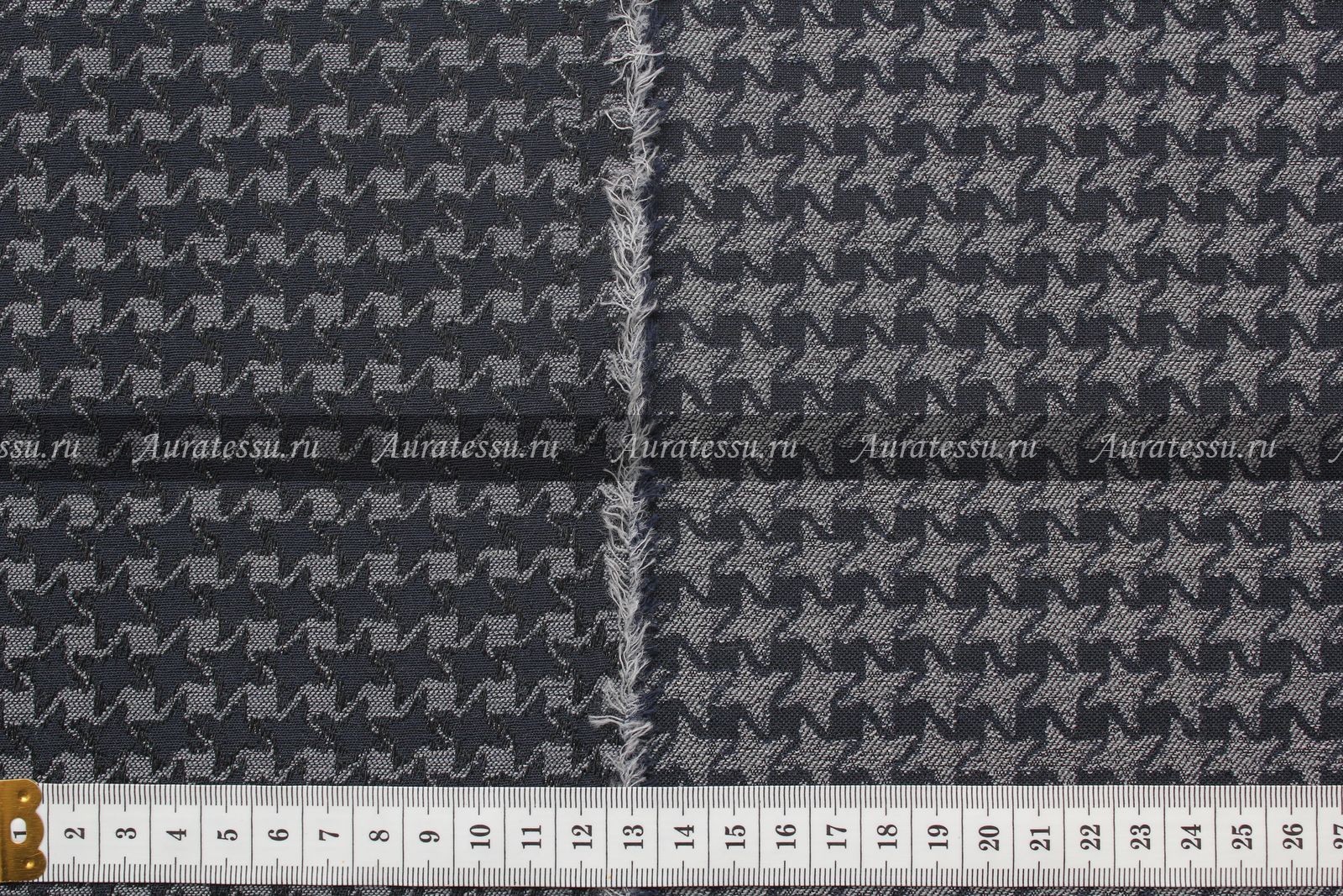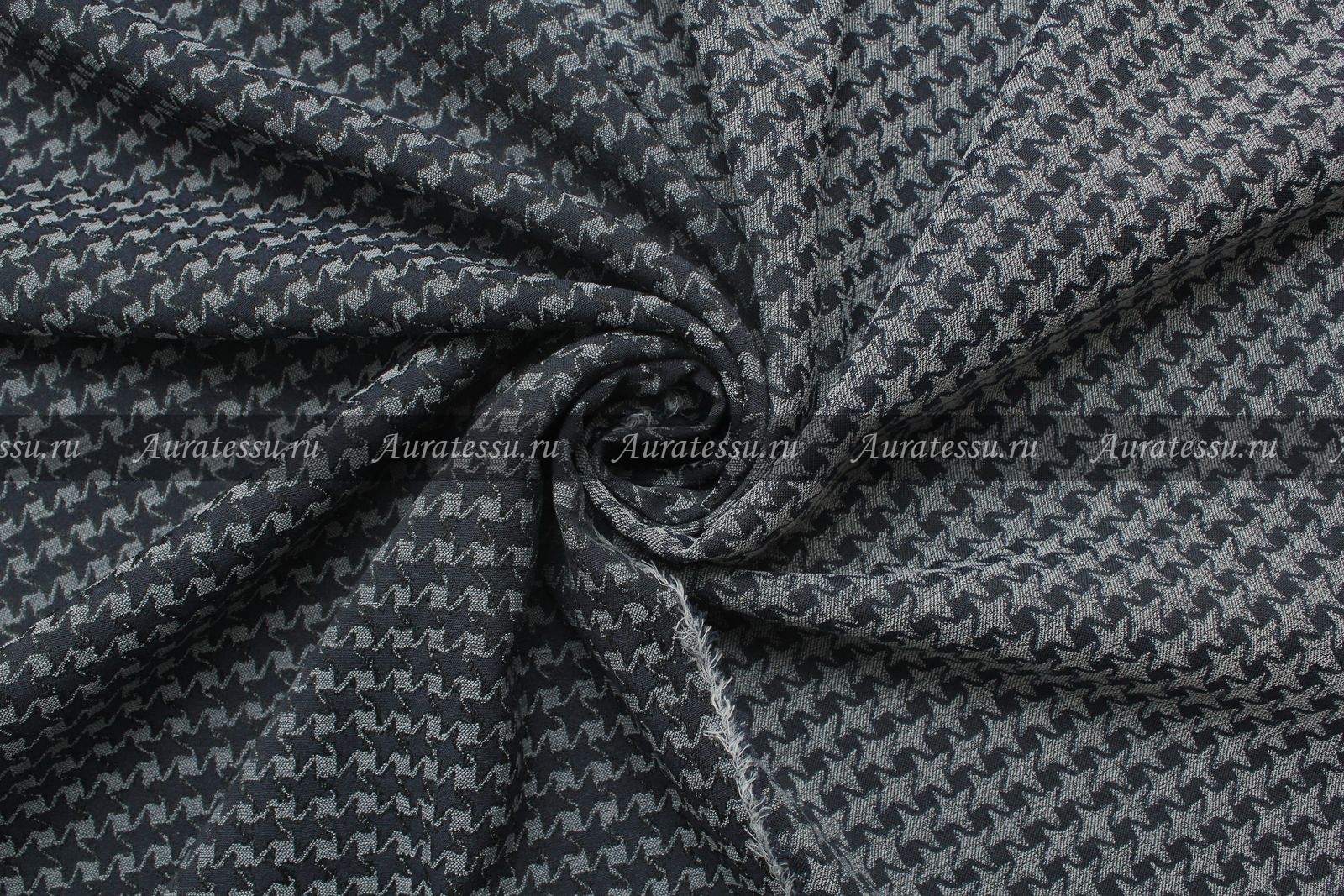 Жаккард стрейч пье-де-пуль серо-чёрная ломаная клетка «звёзды» 380 г/мп