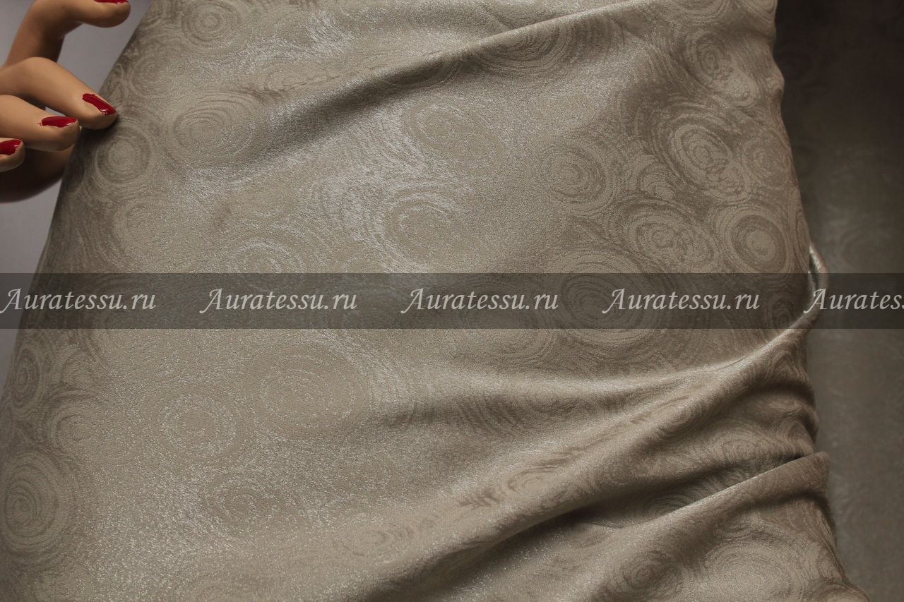 Дополнительная информация:Тонкий атлас-жаккард бежевого цвета с лёгким сероватым оттенком, с искристым узором в виде овалов. Полотно не прозрачное, упругое, эластичное без деформации, хорошо держит форму. Подходит для пошива блуз, платьев и юбок на подкладке, как узких, так и прямых, классических силуэтов. Рекомендации по уходуЖаккардовые ткани с составом 100% полиамид: 100% полиамид или полиамид с эластаном (в том числе полиамид более 50%+ ацетат): плательная, костюмная группа. Ткани жаккардовых переплетений, в состав которых входит в основном полиамид с добавлением вискозы, ацетата и эластана можно стирать в машине при температуре до 30°С в щадящем режиме. Можно отжимать в барабане, но всегда лучше на оборотах до 500. Синтетические ткани практически не дают усадку и не мнутся. Для сушки их нужно подвешивать лучше наизнанку. Эти ткани сохнут быстро и иногда не нуждаются в утюжке. Если вы хотите их отутюжить, то делайте это с изнаночной стороны с паром. Гладить на "шелке", можно слегка сбрызнуть. Жаккарды, с шёлковыми волокнами: Рекомендации производителя - профессиональная химчистка. При таком составе, мы тоже не рекомендуем стирать ткань, но вы можете попробовать на кусочке, оставшемся от кроя: ручная стирка, вода до 30°С, не замачивать, мягкие моющие средства для шёлка, стирать только загрязненные места, отжим в полотенце, сушка в горизонтальном расправленном виде изнанкой вверх, гладить на шелке. Вкусочек побольше, чтобы было видно, как поведёт себя ткань.