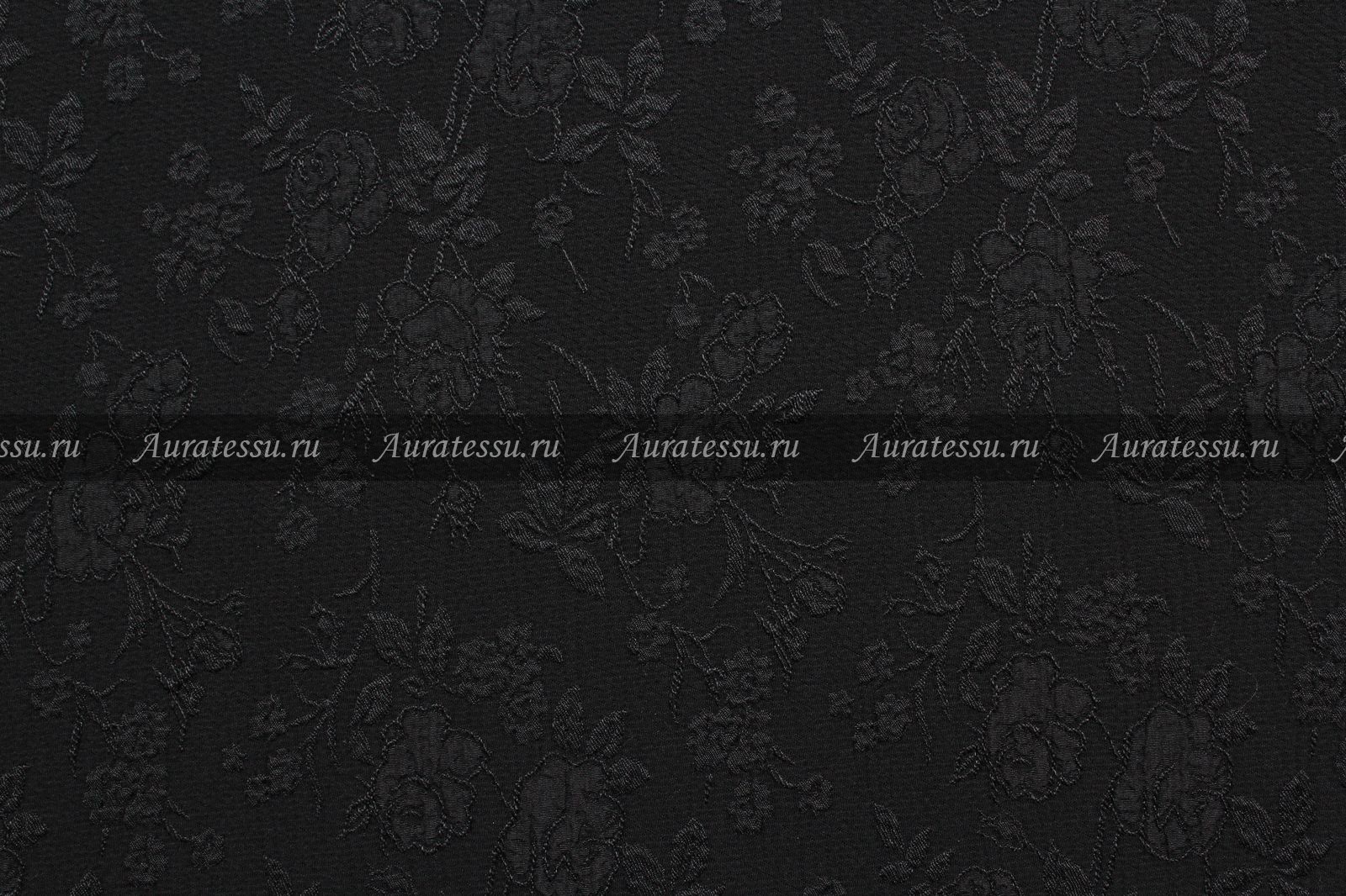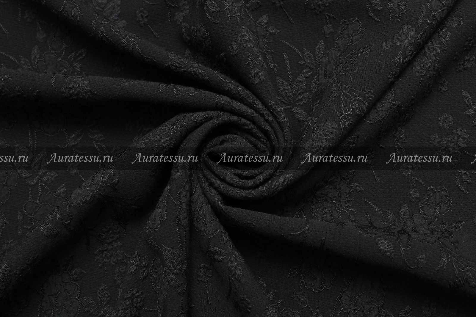 Жаккард-креш-стрейч чёрный с цветочным узором