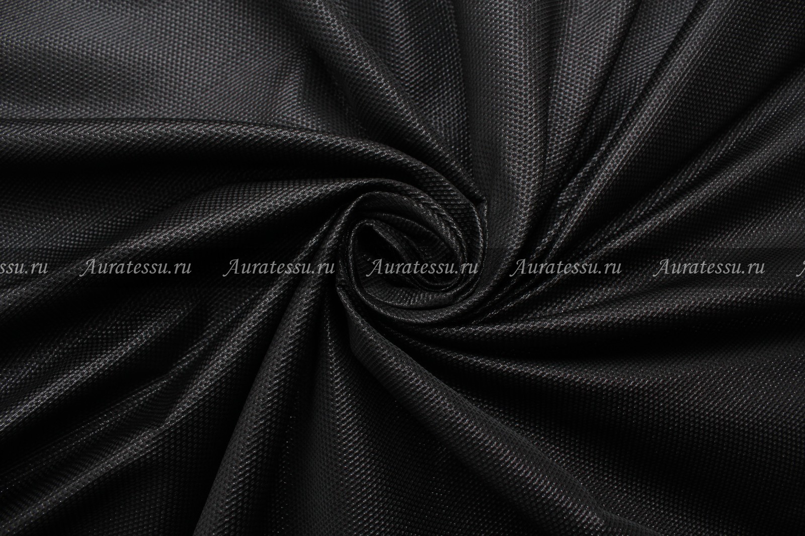 Плотное 300 г/мп, мелко жаккардовое полотно на хлопковой основе. Основа ткани чёрного цвета, по лицевой стороне воткана  чёрная, перламутровая  люрексовая нить.  Блеск приглушённый, но яркий. Ткань упругая, держит форму. Подходит для пошива нарядной  костюмной одежды прямых и объёмных силуэтов.