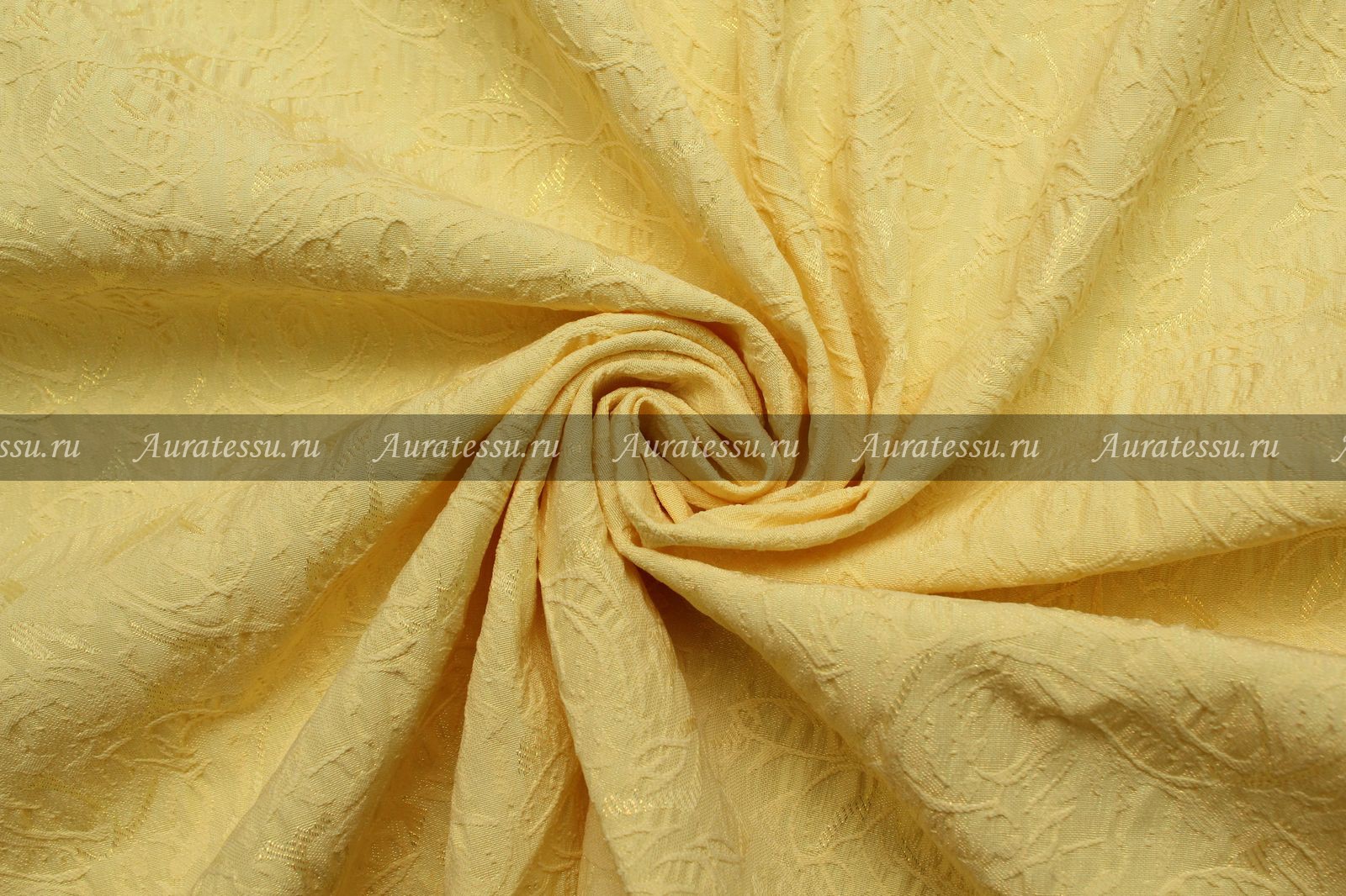 Дополнительная информация:Эластичный нарядный жаккард яркого-лимонного цвета с фактурным «цветочным» узором украшенным блестящей люрексовой нитью в цвет полотна. Ткань тонкая, упругая, хорошо держит форму. Подходит для пошива платьев, жакетов, юбок разнообразных моделей и силуэтов. Рекомендации по уходуЖаккардовые ткани с составом 100% полиамид: 100% полиамид или полиамид с эластаном (в том числе полиамид более 50%+ ацетат): плательная, костюмная группа. Ткани жаккардовых переплетений, в состав которых входит в основном полиамид с добавлением вискозы, ацетата и эластана можно стирать в машине при температуре до 30°С в щадящем режиме. Можно отжимать в барабане, но всегда лучше на оборотах до 500. Синтетические ткани практически не дают усадку и не мнутся. Для сушки их нужно подвешивать лучше наизнанку. Эти ткани сохнут быстро и иногда не нуждаются в утюжке. Если вы хотите их отутюжить, то делайте это с изнаночной стороны с паром. Гладить на "шелке", можно слегка сбрызнуть. Жаккарды, с шёлковыми волокнами: Рекомендации производителя - профессиональная химчистка. При таком составе, мы тоже не рекомендуем стирать ткань, но вы можете попробовать на кусочке, оставшемся от кроя: ручная стирка, вода до 30°С, не замачивать, мягкие моющие средства для шёлка, стирать только загрязненные места, отжим в полотенце, сушка в горизонтальном расправленном виде изнанкой вверх, гладить на шелке. Вкусочек побольше, чтобы было видно, как поведёт себя ткань.