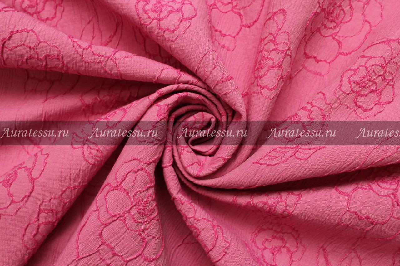 Дополнительная информация:Хлопок-жаккард средней плотности, розового цвета с ярко-розовым цветочным узором, слегка крешированный, достаточно упругий. Изнанка у полотна молочно-белого цвета. Ткань держит форму, подходит для пошива костюмно-плательной одежды прямых, строгих силуэтов, а так же в мягкую складку. Рекомендации по уходуЖаккардовые ткани с составом 100% полиамид: 100% полиамид или полиамид с эластаном (в том числе полиамид более 50%+ ацетат): плательная, костюмная группа. Ткани жаккардовых переплетений, в состав которых входит в основном полиамид с добавлением вискозы, ацетата и эластана можно стирать в машине при температуре до 30°С в щадящем режиме. Можно отжимать в барабане, но всегда лучше на оборотах до 500. Синтетические ткани практически не дают усадку и не мнутся. Для сушки их нужно подвешивать лучше наизнанку. Эти ткани сохнут быстро и иногда не нуждаются в утюжке. Если вы хотите их отутюжить, то делайте это с изнаночной стороны с паром. Гладить на "шелке", можно слегка сбрызнуть. Жаккарды, с шёлковыми волокнами: Рекомендации производителя - профессиональная химчистка. При таком составе, мы тоже не рекомендуем стирать ткань, но вы можете попробовать на кусочке, оставшемся от кроя: ручная стирка, вода до 30°С, не замачивать, мягкие моющие средства для шёлка, стирать только загрязненные места, отжим в полотенце, сушка в горизонтальном расправленном виде изнанкой вверх, гладить на шелке. Вкусочек побольше, чтобы было видно, как поведёт себя ткань.