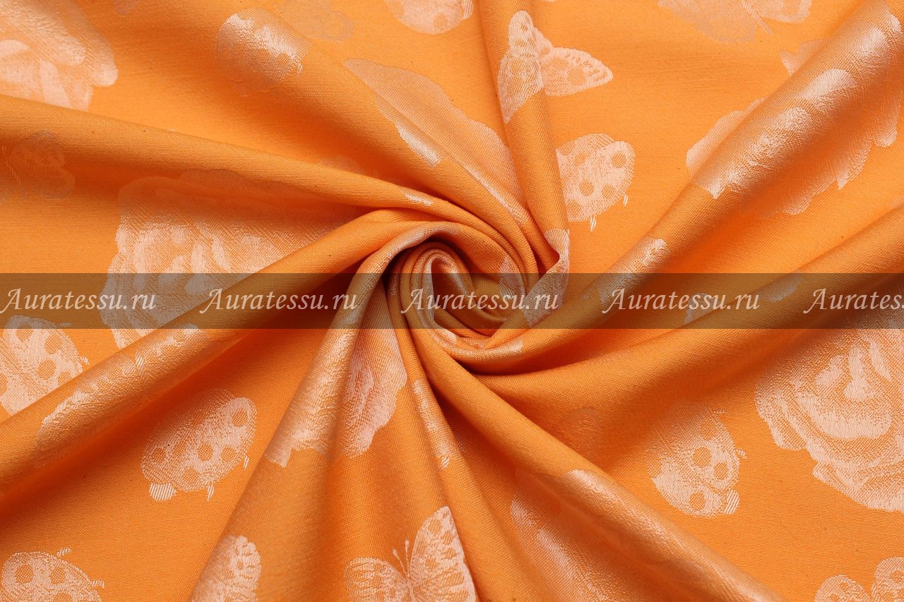 Дополнительная информация:Жаккардовая ткань средней плотности оранжево-терракотового цвета с белой полупрозрачной нитью по лицевой стороне полотна, с помощью которой на ткани выткан узор с бабочками. Полотно хорошо держит форму, в меру упругое. Подходит для пошива плательно-костюмной группы одежды, прямых и классических силуэтов. Рекомендации по уходуЖаккардовые ткани с составом 100% полиамид: 100% полиамид или полиамид с эластаном (в том числе полиамид более 50%+ ацетат): плательная, костюмная группа. Ткани жаккардовых переплетений, в состав которых входит в основном полиамид с добавлением вискозы, ацетата и эластана можно стирать в машине при температуре до 30°С в щадящем режиме. Можно отжимать в барабане, но всегда лучше на оборотах до 500. Синтетические ткани практически не дают усадку и не мнутся. Для сушки их нужно подвешивать лучше наизнанку. Эти ткани сохнут быстро и иногда не нуждаются в утюжке. Если вы хотите их отутюжить, то делайте это с изнаночной стороны с паром. Гладить на "шелке", можно слегка сбрызнуть. Жаккарды, с шёлковыми волокнами: Рекомендации производителя - профессиональная химчистка. При таком составе, мы тоже не рекомендуем стирать ткань, но вы можете попробовать на кусочке, оставшемся от кроя: ручная стирка, вода до 30°С, не замачивать, мягкие моющие средства для шёлка, стирать только загрязненные места, отжим в полотенце, сушка в горизонтальном расправленном виде изнанкой вверх, гладить на шелке. Вкусочек побольше, чтобы было видно, как поведёт себя ткань.
