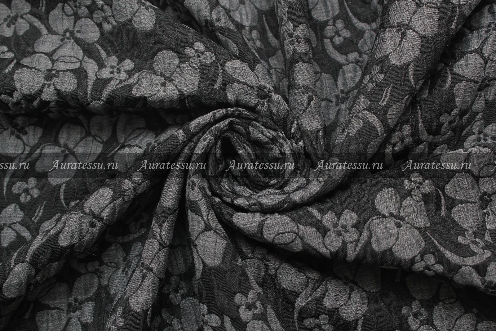 Жаккард клоке Max Mara чёрно-серые цветы 210 г/мп