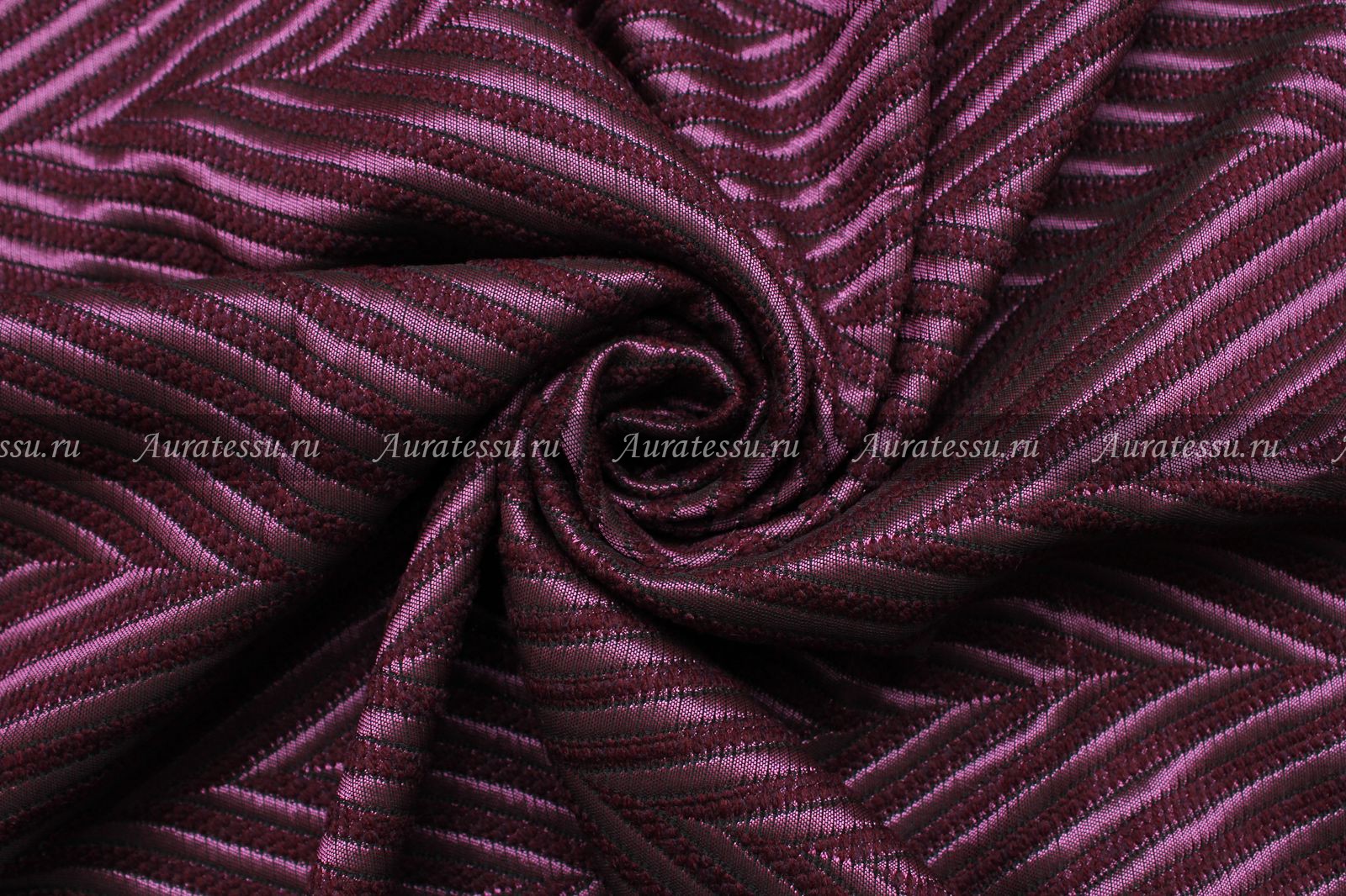 Дополнительная информация:Жаккардовое полотно фиолетового цвета с узором ёлочка. Рисунок крупный, ширина одной полоски 7 см. чередование матовой и слегка глянцевой полоски расположенной под углом. Ткань упругая, хорошо держит форму. Подходит для пошива жакетов, юбок, пальто строгих силуэтов. Рекомендации по уходуЖаккардовые ткани с составом 100% полиамид: 100% полиамид или полиамид с эластаном (в том числе полиамид более 50%+ ацетат): плательная, костюмная группа. Ткани жаккардовых переплетений, в состав которых входит в основном полиамид с добавлением вискозы, ацетата и эластана можно стирать в машине при температуре до 30°С в щадящем режиме. Можно отжимать в барабане, но всегда лучше на оборотах до 500. Синтетические ткани практически не дают усадку и не мнутся. Для сушки их нужно подвешивать лучше наизнанку. Эти ткани сохнут быстро и иногда не нуждаются в утюжке. Если вы хотите их отутюжить, то делайте это с изнаночной стороны с паром. Гладить на "шелке", можно слегка сбрызнуть. Жаккарды, с шёлковыми волокнами: Рекомендации производителя - профессиональная химчистка. При таком составе, мы тоже не рекомендуем стирать ткань, но вы можете попробовать на кусочке, оставшемся от кроя: ручная стирка, вода до 30°С, не замачивать, мягкие моющие средства для шёлка, стирать только загрязненные места, отжим в полотенце, сушка в горизонтальном расправленном виде изнанкой вверх, гладить на шелке. Вкусочек побольше, чтобы было видно, как поведёт себя ткань.