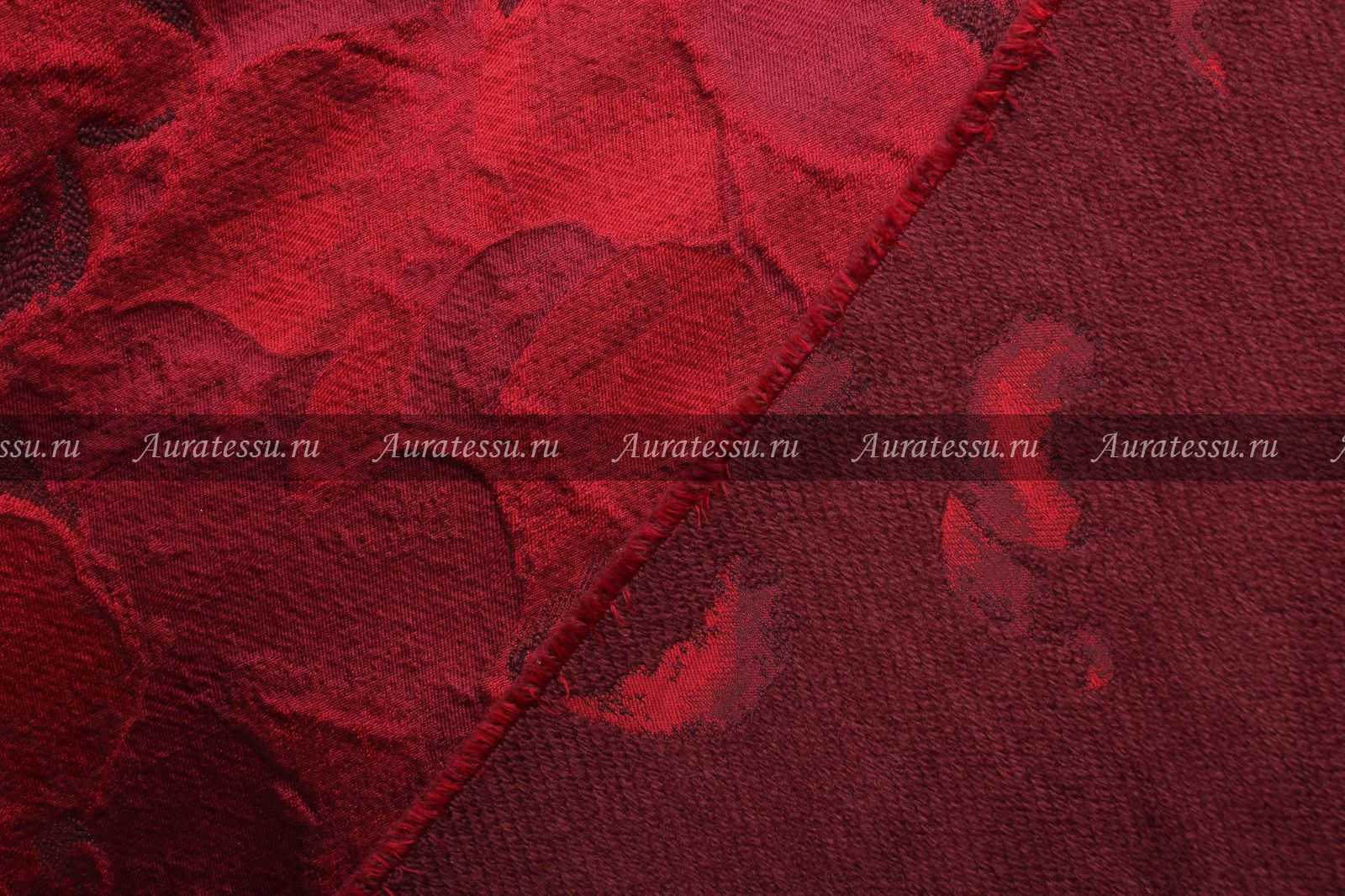 - Жаккард шерсть-шелк Cadena яркий красно-вишнёвый с цветами, плотный
