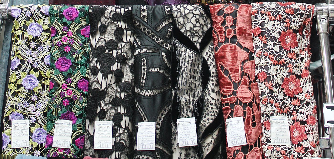 Вы можете выбрать все необходимое для пошива оригинальной повседневной и эксклюзивной одежды, вечерних платьев и свадебных нарядов, а также фурнитуру для шитья и аксессуары. У нас вы всегда сможете купить кружева, макраме, с фистонами по кромке, ткани украшенные вышивкой из пайеток и бисера, вышитые нитями на сетке, шифоне и шелке, фатин разной степени жесткости (мягкий, средний и жесткий) в розницу и оптом.