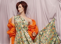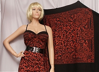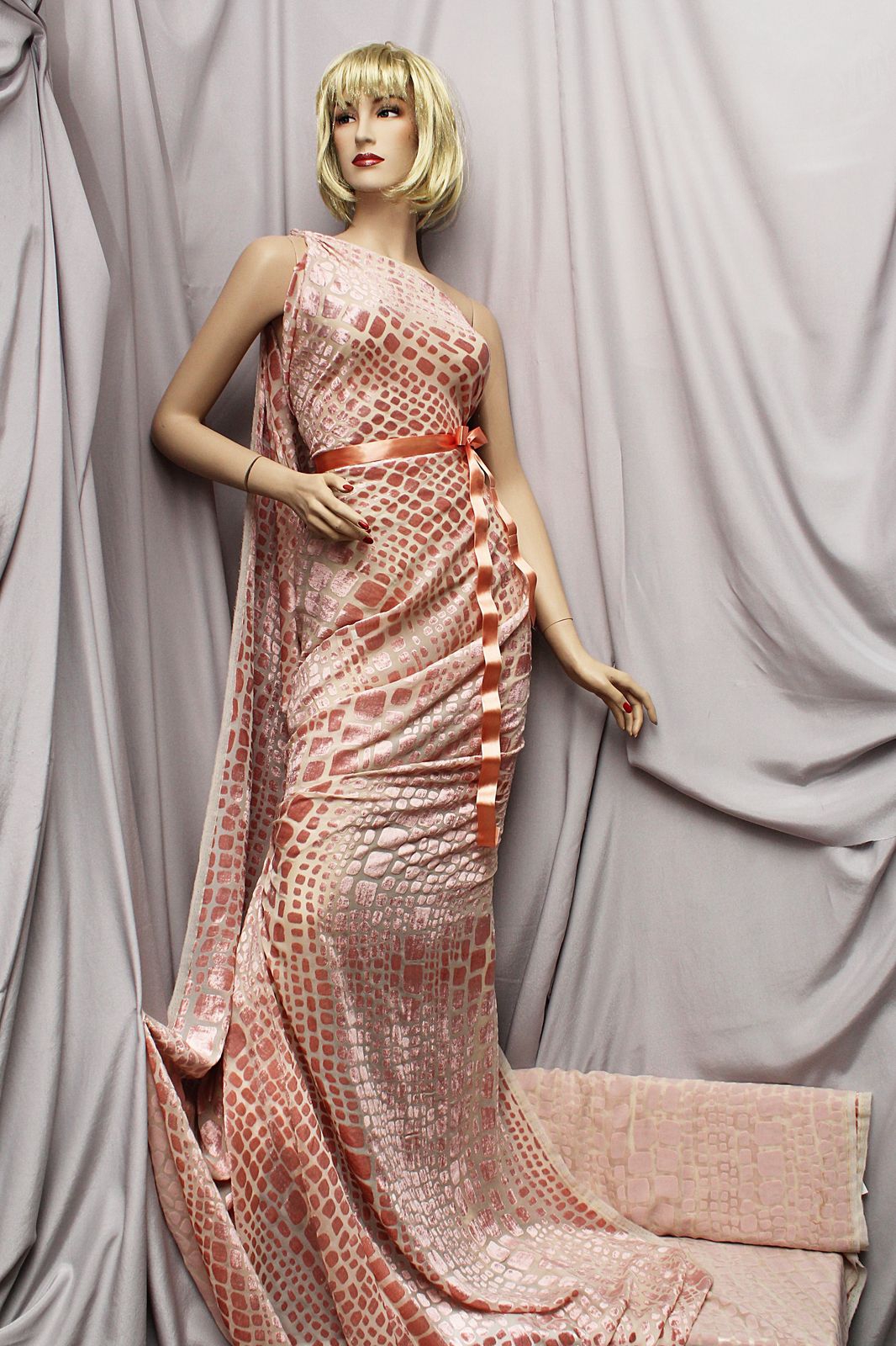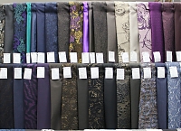 Всегда в продаже следующие ткани: панбархат, бархат с рисунком, панбархат деворе, беспрецедентный выбор шелка: однотонных атласов, атласов с рисунком, жоржетов, крепдешинов, и много других видов шелка. Полный ассортимент тканей по видам вы найдете в нашем каталоге, расположенном слева.