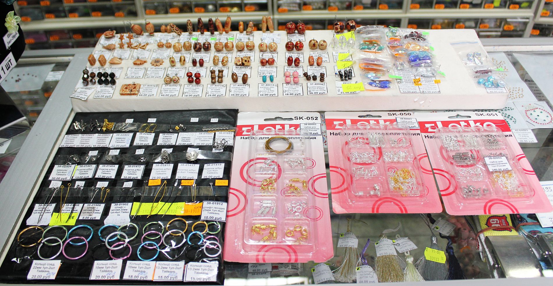 Если вы запланировали украсить свою одежду или обновить ее,- в отделе товаров для рукоделия для Вас большой выбор декоративных украшений и швейной фурнитуры: молнии, пряжки, клеванты, клеевые и пришивные стразы, бисер, бусины (поштучно и упаковками), пуговицы, фурнитура для бижутерии и многое другое.